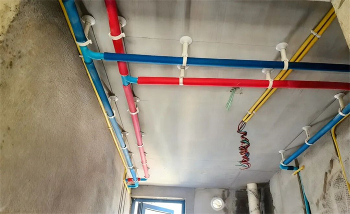 △水管排布感观横平竖直,墙体线槽内给水管只能用整管,不允许用直接连接,合格。