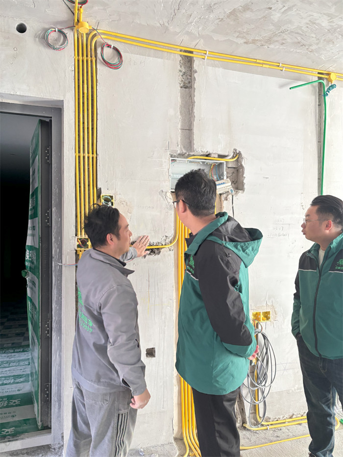 △巡检不是走过场,需要对水电施工等关键节点进行细致检查。黄色的线管规范排布,每一处接线都要严格遵循工艺标准,这不仅是对施工规范的坚守,更是对业主新家品质的承诺。