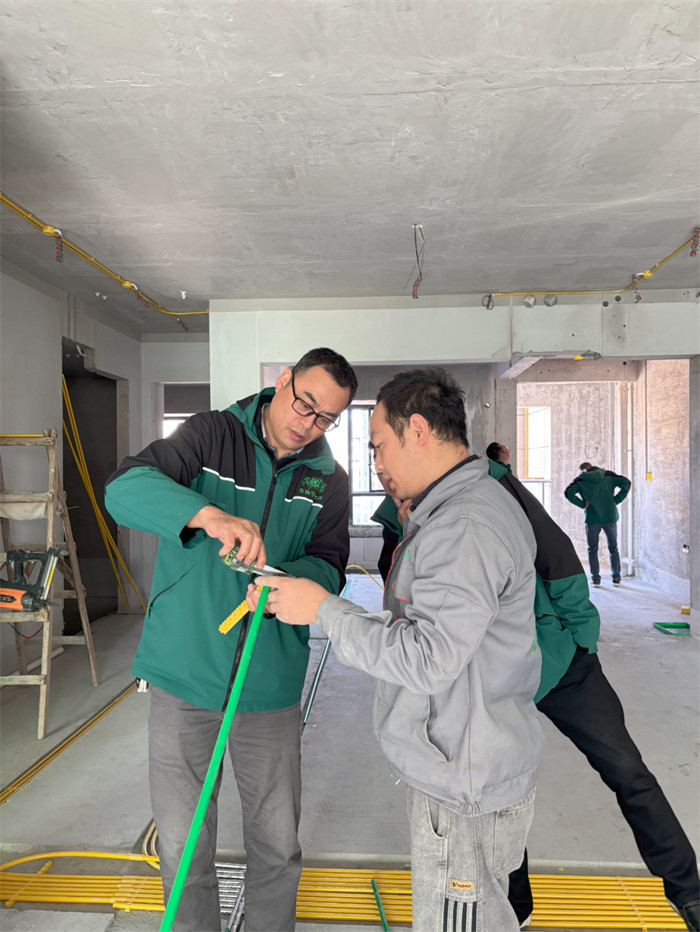 △对材料也仔细检查,每一个细节也都不放过,这不仅是对施工工艺的严格校验,更是对业主未来生活品质的郑重承诺。
